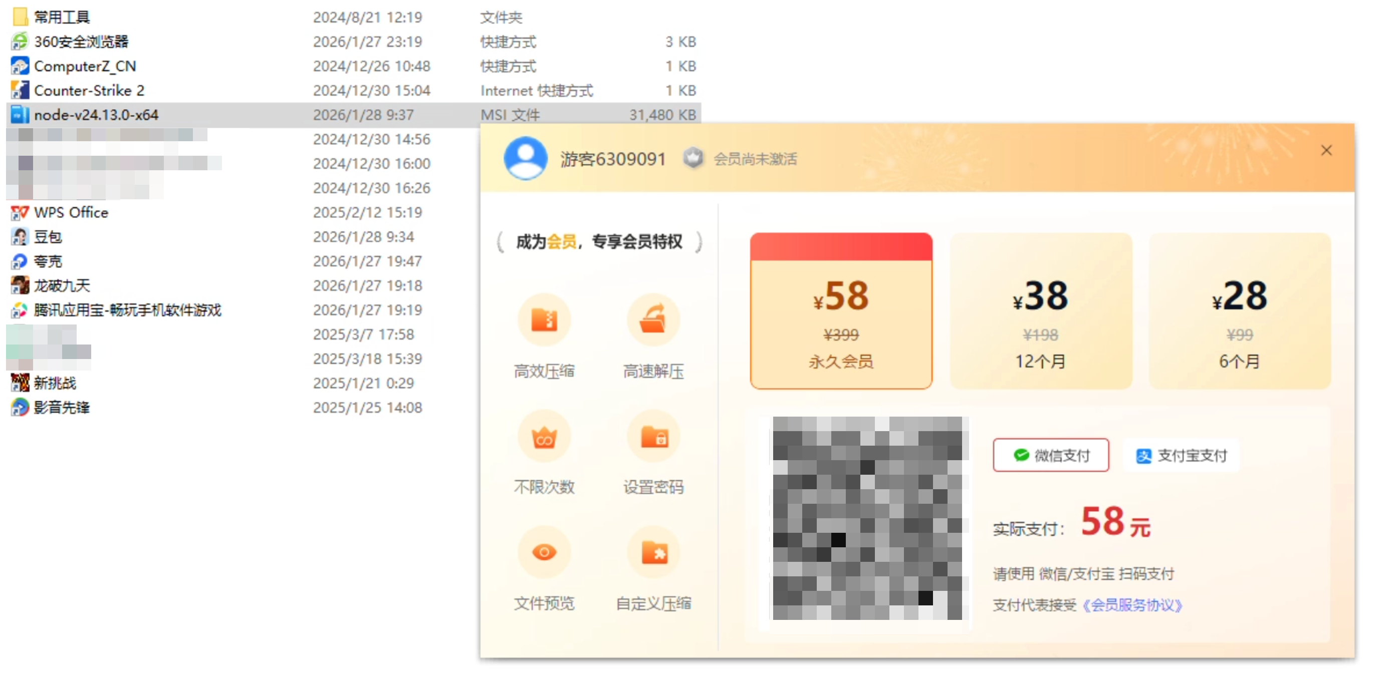 我去 Node.js 官网下载安装包。下载很顺利,问题出在安装的时候。双击那个 msi 文件,屏幕中央弹出一个窗口:建议使用 XX 软件管家进行安全安装。我点了取消,它又弹。关掉,再弹。来回几次之后,跳出一个付费界面,说要开通会员解锁高级功能才能继续。